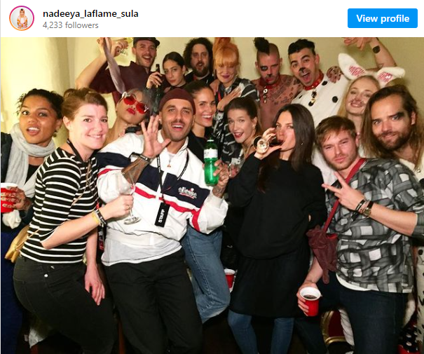 Eagle-eyed netizens noticed Sophie in the background of a groupie posted on Instagram, wearing bunny ears and standing just below Joe. The Instagram post was made by “Nadeeya Sula,” a designer.
