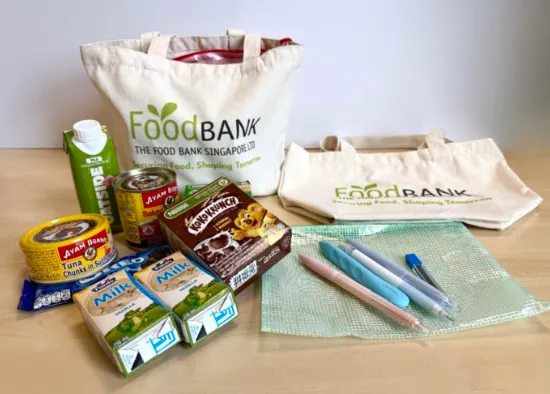 Each Back-to-School Support Kit will include two protein items (canned items suitable for breakfast), two cereals or energy bars, two drinks (milk, plant-based, or energy drinks), and one treat item, alongside a basic stationery set in a soft case and a canvas lunch tote. The food items comprise a mix of rescued food, donated items, and purchased goods, with The Food Bank Singapore procuring additional items when donations fall short of quantity or nutritional requirements, enabling them to maintain consistency and quality across kits.