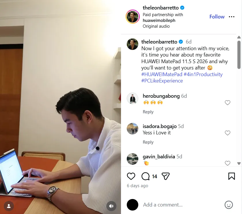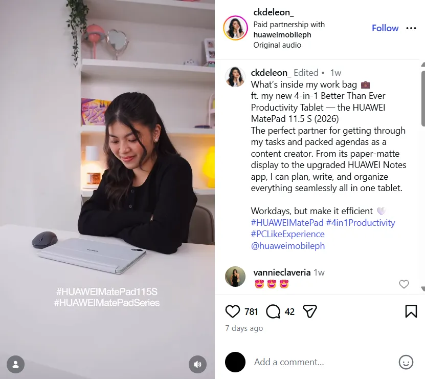 Lifestyle creator and entrepreneur Alliah Racelis says the HUAWEI MatePad 11.5 S 2026 transforms how she moves through her day. Before work, she enjoys watching inspirational videos and unwinding with casual games, with vivid colors thanks to P3 color accuracy and smooth motion powered by the 2.8K display and 144Hz adaptive refresh rate. When it’s time to focus, she can seamlessly switch to reviewing documents, organizing content plans, and responding to messages—comfortably and efficiently on the same screen. This smooth transition from entertainment to productivity keeps her motivated, refreshed, and focused all day long.