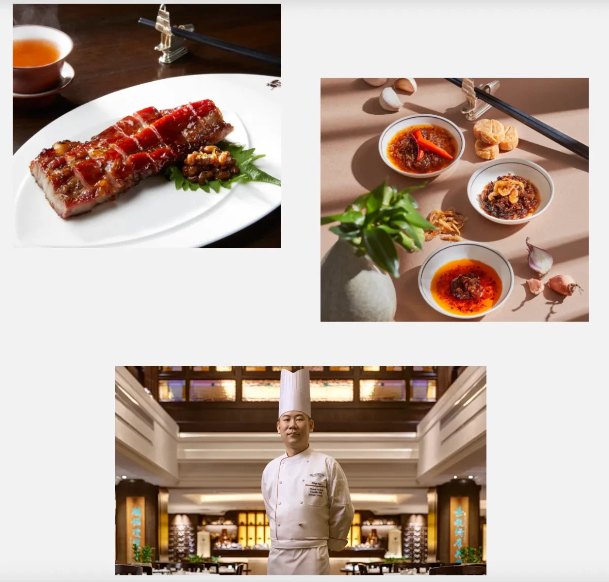 Menu offerings range from elaborate dishes, including Braised Bird’s Nest Soups, Roasted Peking Duck, and Wok-fried Kagoshima beef, to abundant dim sum varieties. All can be paired with artisanal teas recommended by Spring Moon’s Tea Masters and signature spicy condiments – including the world-famous XO Chilli Sauce, which originated here.